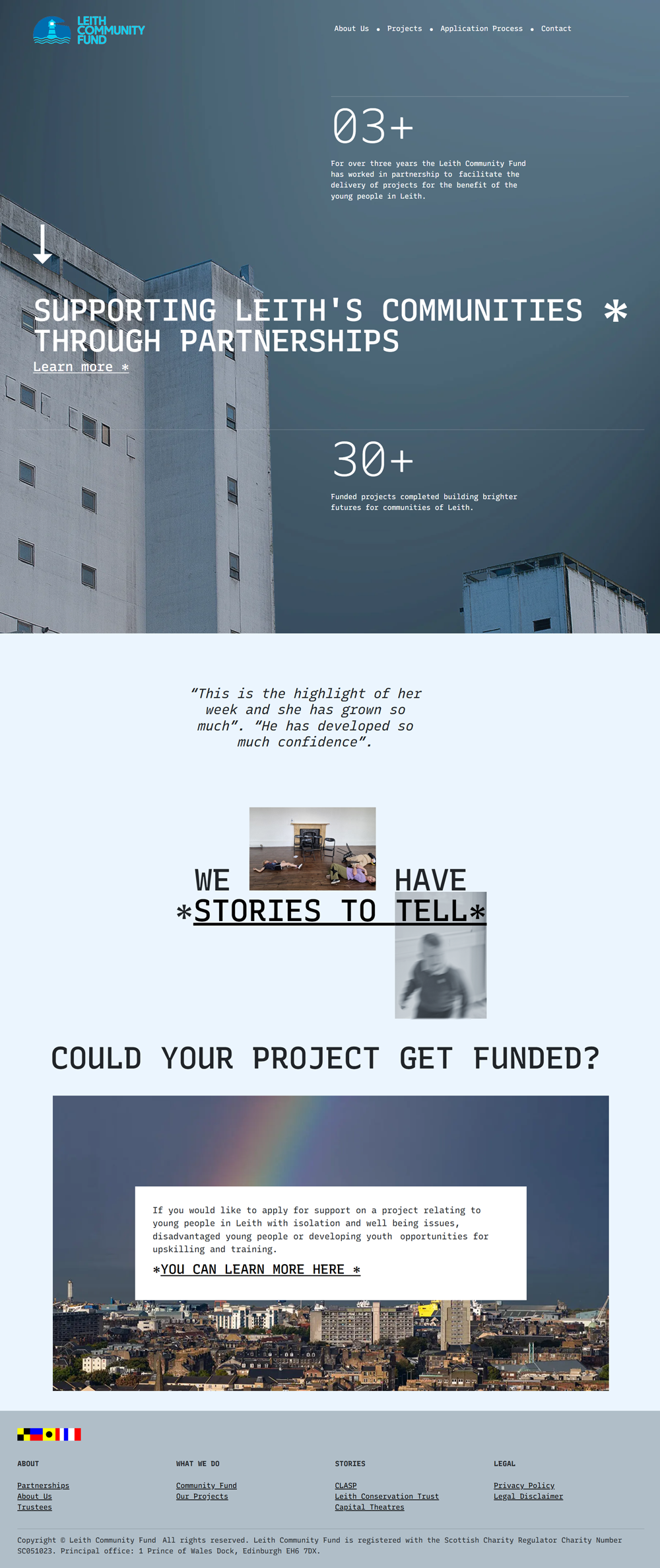 WEB were approached by the Leith Community Fund to engage the people of Leith with an improved functional website that promotes grant applications and display their case studies.